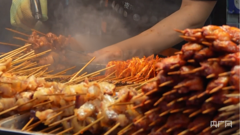 怀远夜市中的烤肉摊,烟火气十足(央广网记者 李畅 摄)
