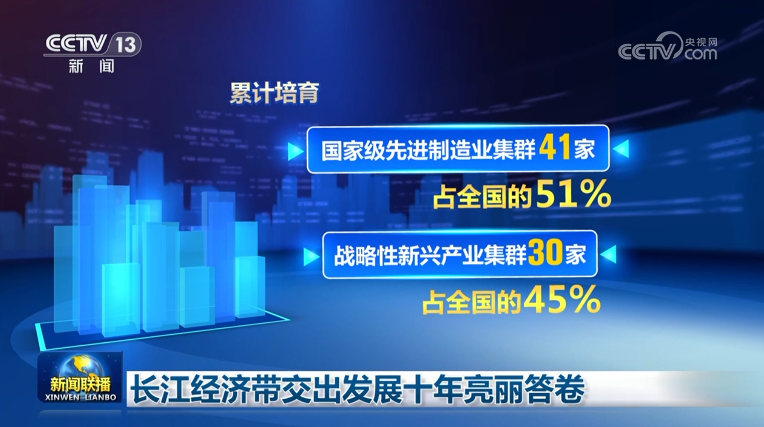 科技创新和产业创新在长江经济带加快融合。持续推进上海(长三角)国际科技创新中心和武汉、成渝地区区域科技创新中心建设,累计培育国家级先进制造业集群41家、战略性新兴产业集群30家,分别占全国的51%和45%。