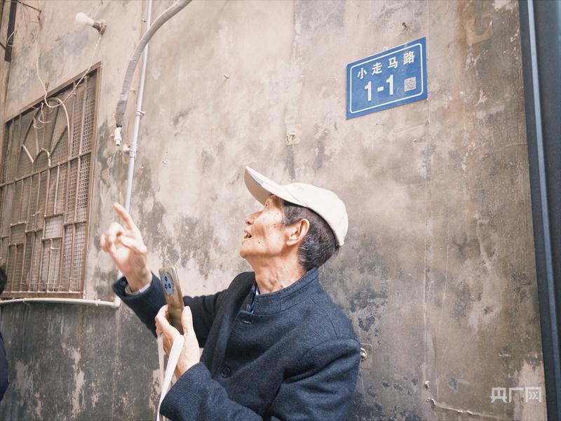 正在介绍小走马路的卢志明(央广网见习记者 蔡雨煊 摄)