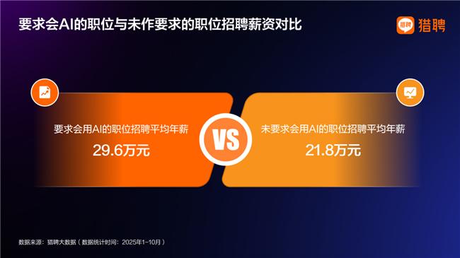猎聘大数据研究院观察到,2025年AI正从一项前沿的“试验性技术”深度演变为决定职业前景与企业生存的核心驱动力。一个显著的信号是:AI技能已成为高薪“硬通货”。