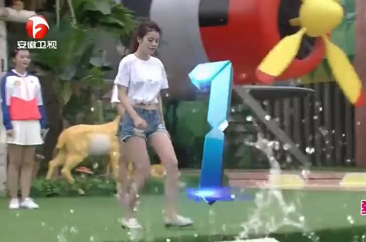 美女穿牛仔短裤来闯关,落水后特别尴尬