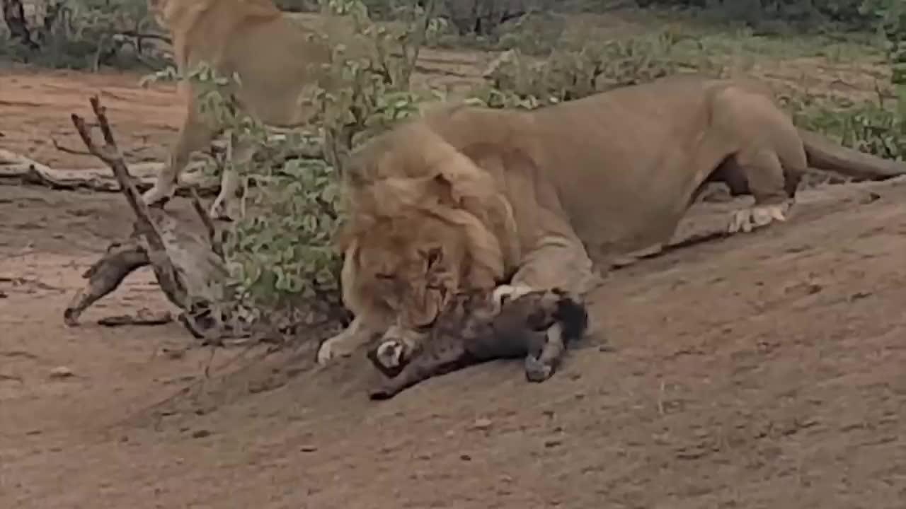 残酷的大自然:实拍狮子当场咬死鬣狗幼崽