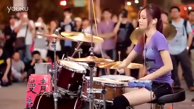 高手在民间,广州街头靓妹一个人玩起(击鼓)非常好听