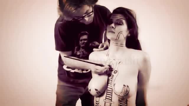 人体彩绘全过程 女模一丝不挂为艺术献身
