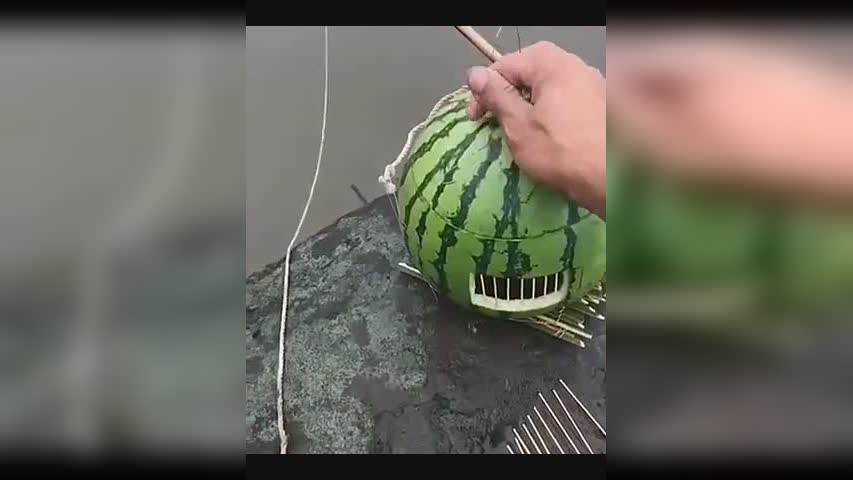 男子用西瓜钓鱼,一小时后提上来,打开西瓜一看收获满满