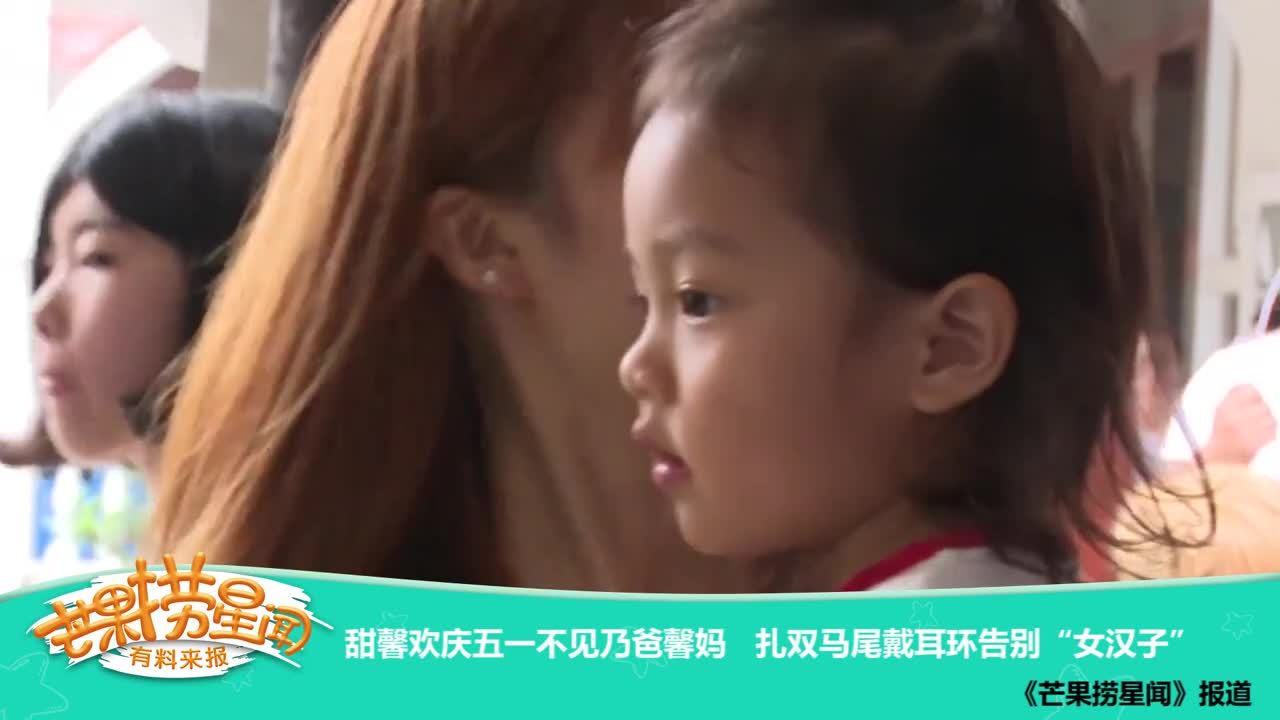 甜馨欢庆五一!扎双马尾戴耳环,越来越有美女气质!