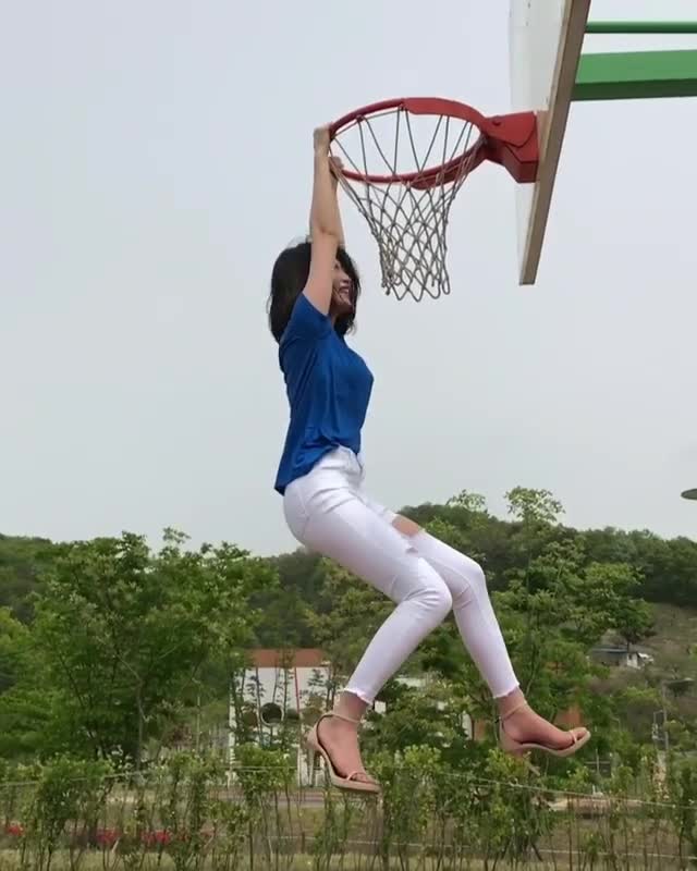 爱运动妹纸:一会功夫居然扣上篮了