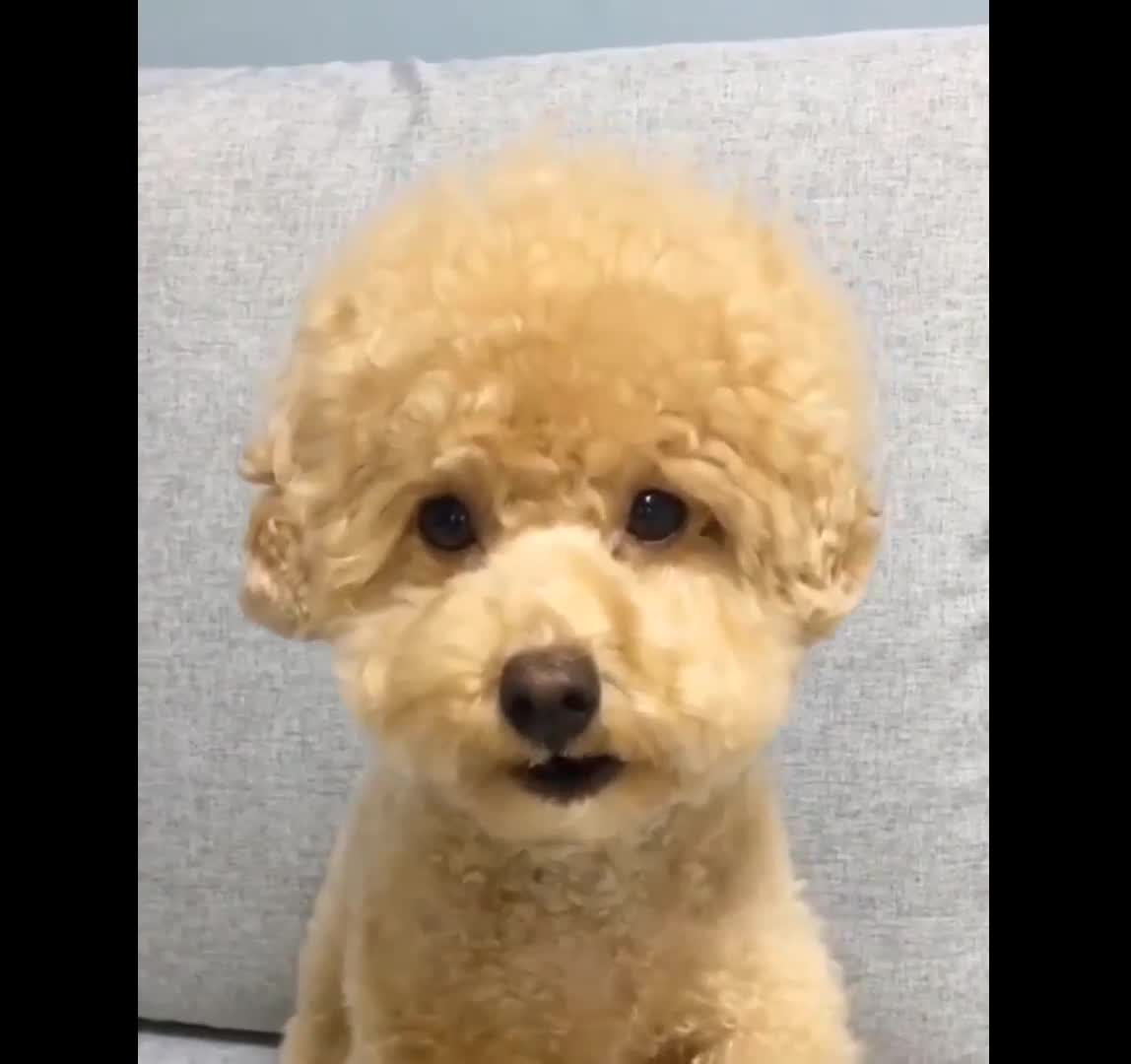 泰迪学主人说话,好聪明的狗狗啊