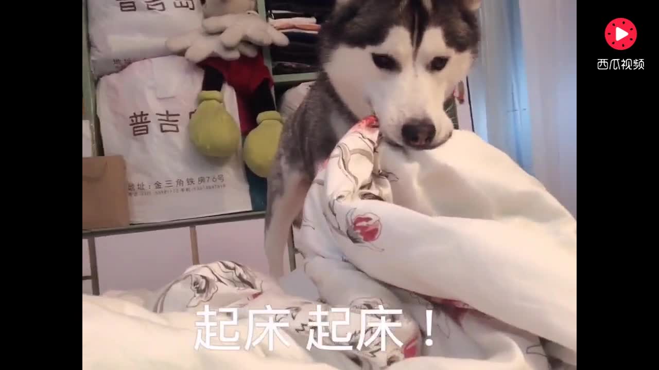 女主人不起床,哈士奇竟把女主人被子揭开了,女主瞬间爆发了