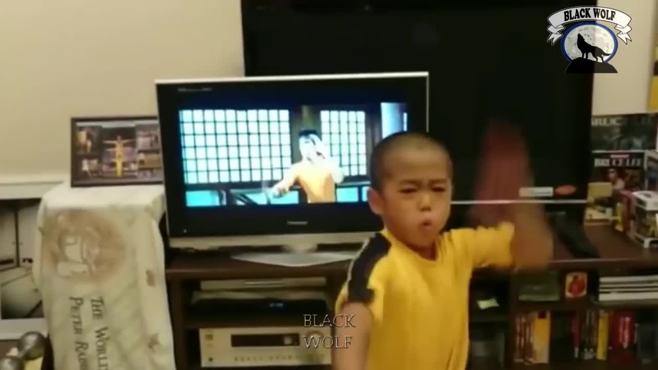 不得了,六岁男孩模仿李小龙,这孩子从娘胎里就开始练了吧!