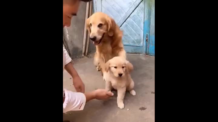 金毛狗狗第一次当爸爸,紧紧把宝宝抱在怀里,铲屎官都别想碰