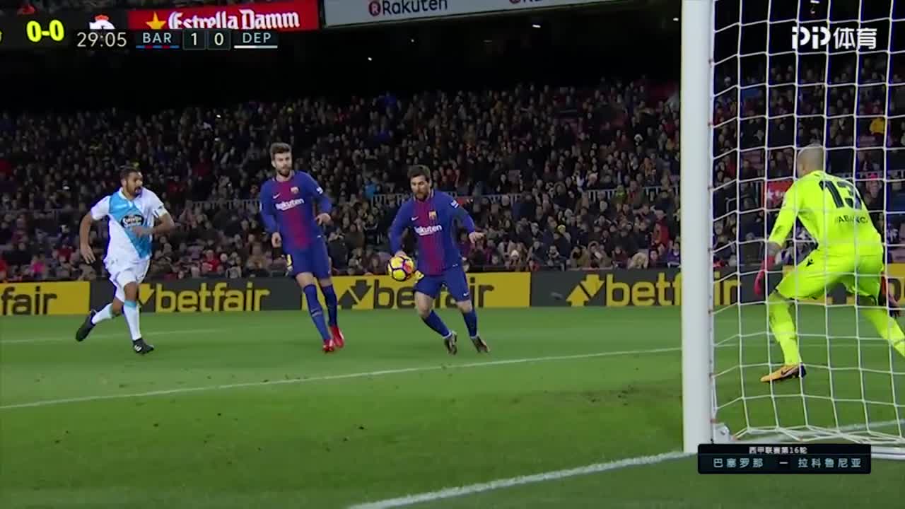 西甲第16轮-巴萨4:0拉科鲁尼亚,暴力鸟保利尼奥连进两球