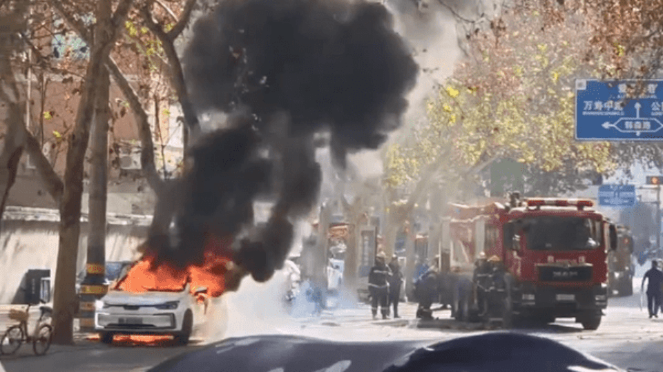 新能源电车路边起火烈焰吞噬车身