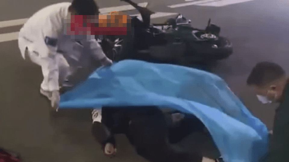18岁少年骑机车出车祸摔倒身亡 现场遗体被蓝布遮盖