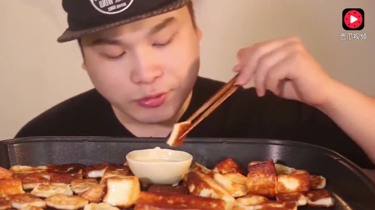 韩国帅哥吃烤奶酪,沾炼奶吃,看着好想吃一口