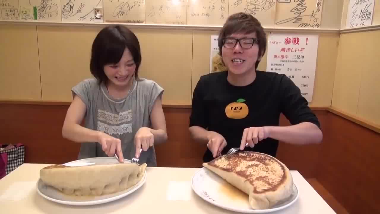 大胃王木下和帅哥挑战5斤巨型饺子,木下一口气就吃完了