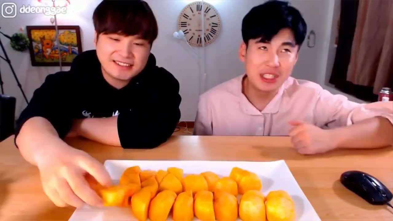 韩国大胃王兄弟,吃一大盘新鲜爽脆鲜甜柿子块