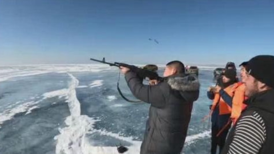 中国男子自驾横穿贝加尔湖,还端着枪在冰面上射击!