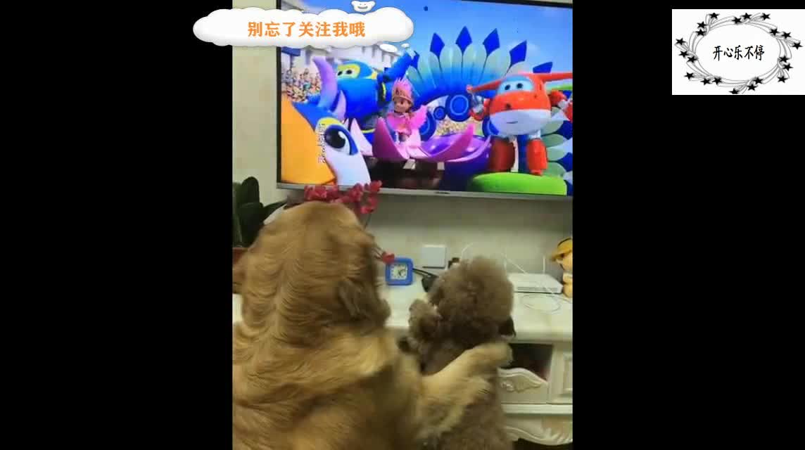金毛和泰迪一起看电视,金毛欺负泰迪不让看,泰迪委屈的哭了