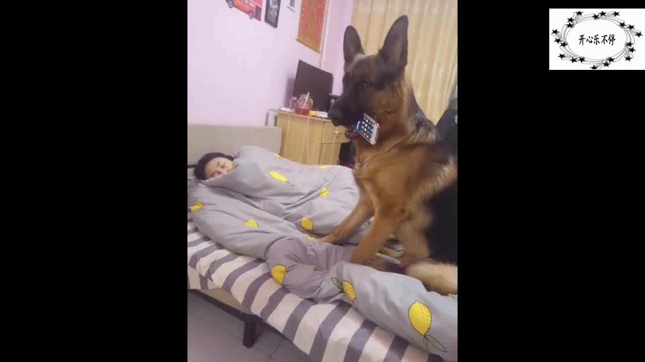 女主赖床不起,狗狗忍不住出绝招了,女主气的把手机摔了