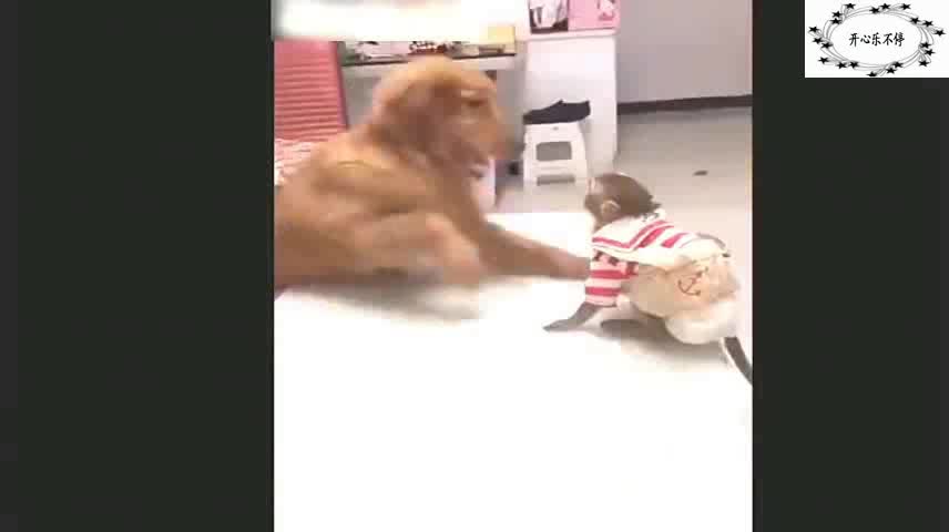 猴子被金毛揍了,小猴子眼泪汪汪的找主人告状,小可怜萌翻了