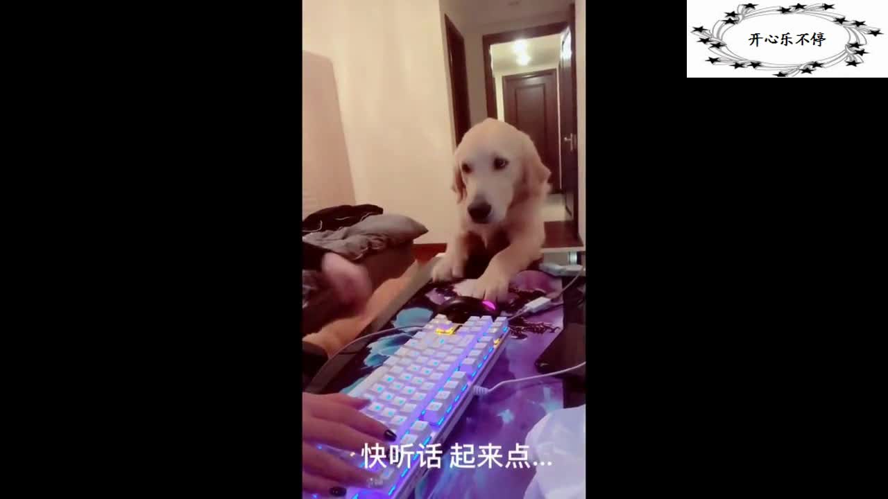 女主人正在玩吃鸡游戏,金毛来了之后,让人笑到没朋友
