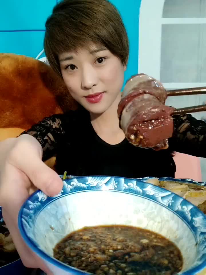 东北小女吃血肠,蘸着蒜泥吃的真是过足了瘾!