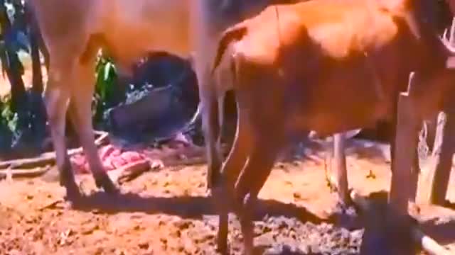 公牛闻了闻母牛,十分满意,摇头晃脑的去洗澡了