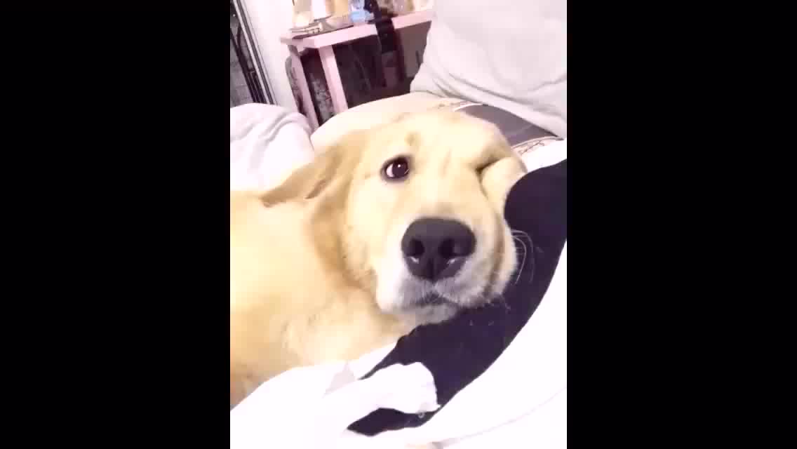 金毛学坏了,抱着女主人的腿不放,还整天求摸摸