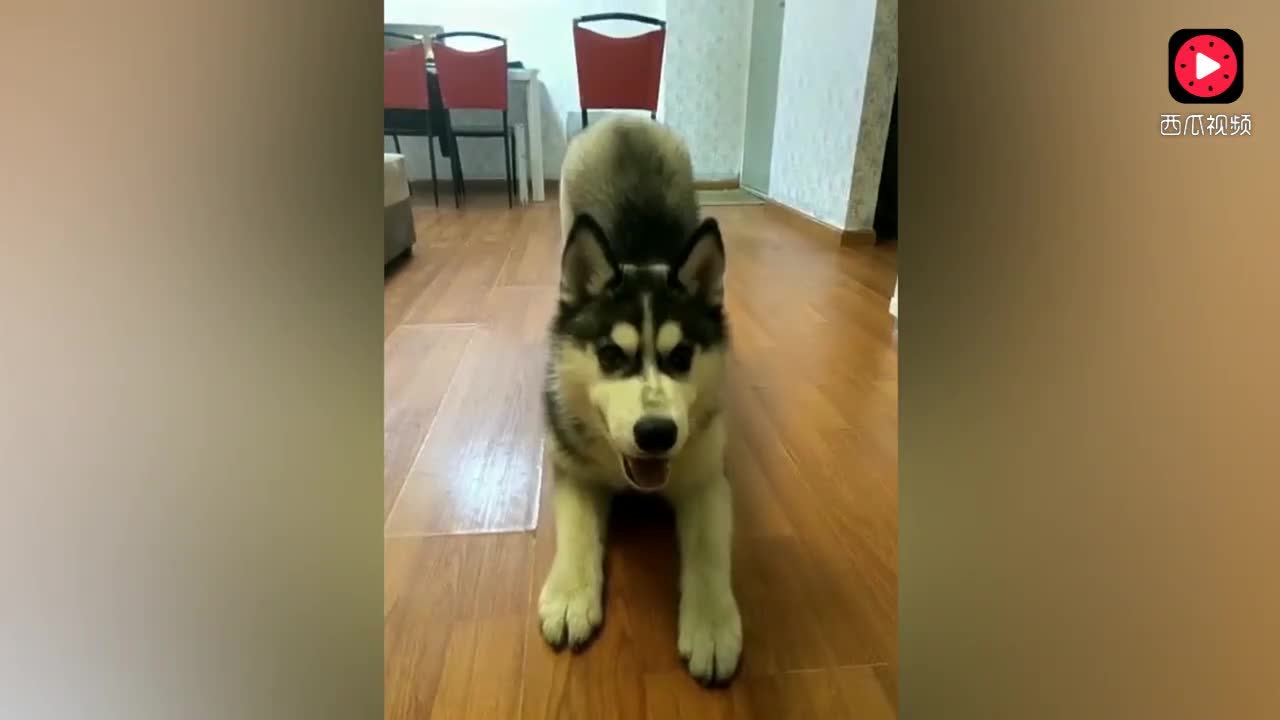 主人叫哈士奇,哈士奇死活不应声,主人一顿暴打后二哈哭了