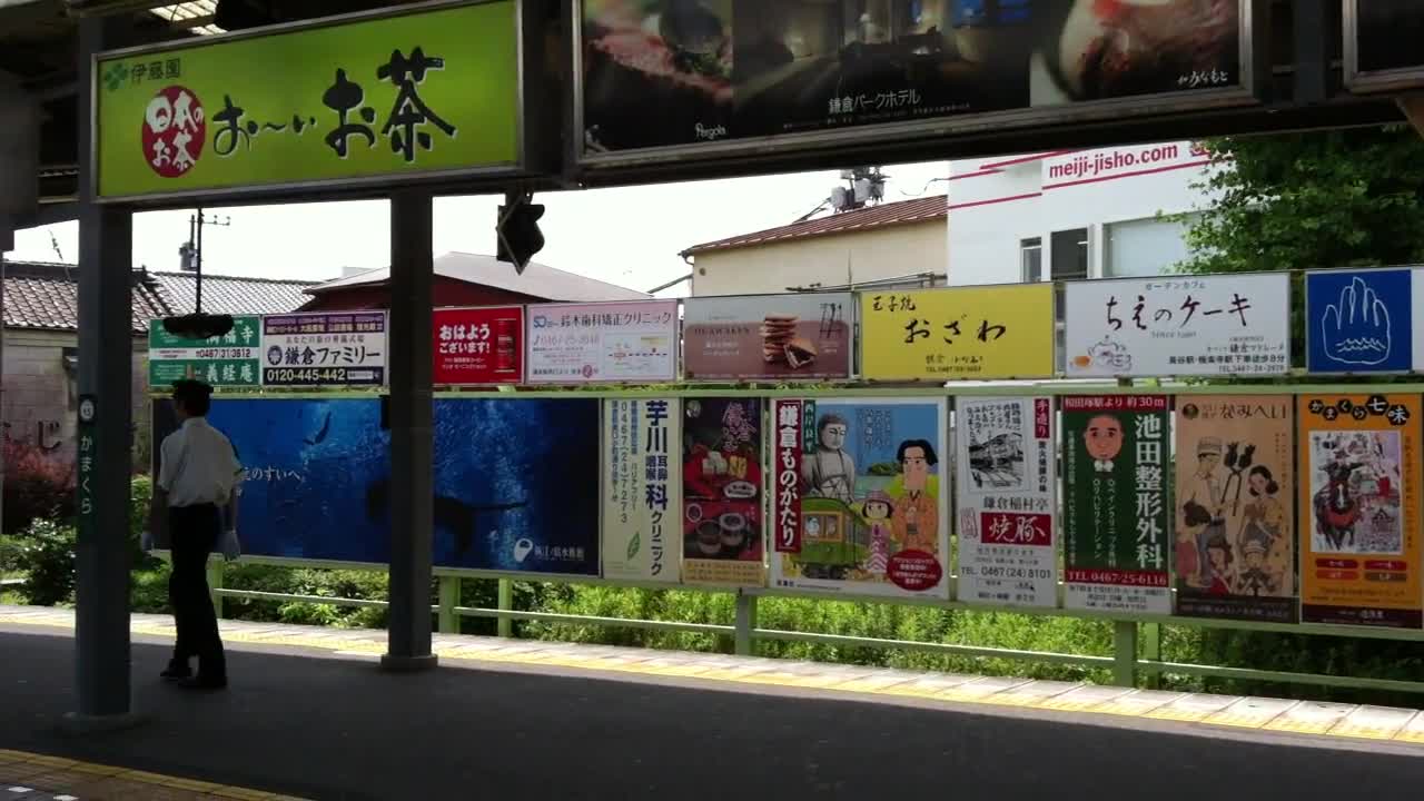 日本镰仓电车站,电车到站准备上车