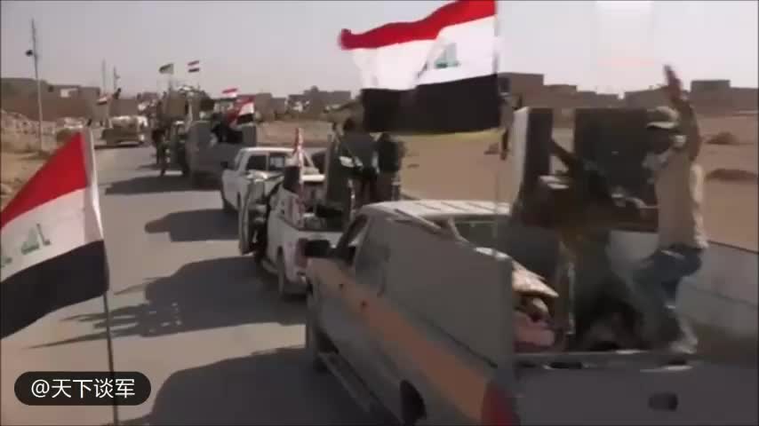 伊拉克政府军士兵载歌载舞庆祝收复被1515控制的小镇
