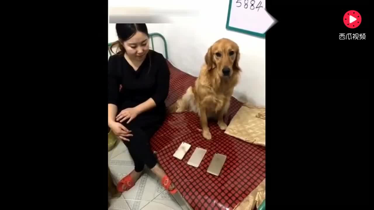 主人给狗狗准备了三个手机让它选一个,狗狗的选择亮了