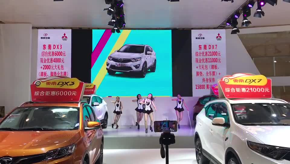 东南汽车国际车展开幕式,美女劲舞带动氛围,香车美女任你选