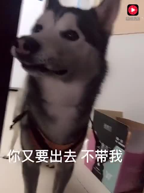 主人出门又不带哈士奇 哈利,给哈利的嘴都气歪的,真的歪了