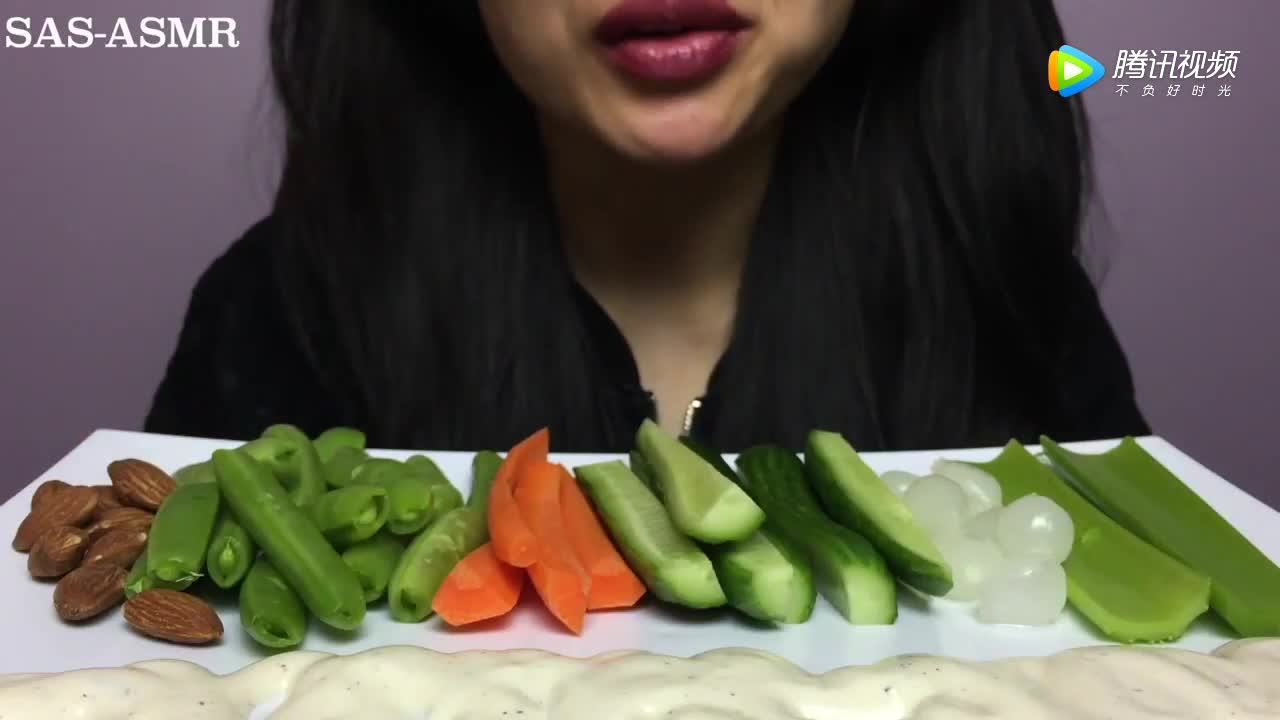 韩国妹子吃新鲜蔬菜,极脆的嘎嘎声,吃的真是香