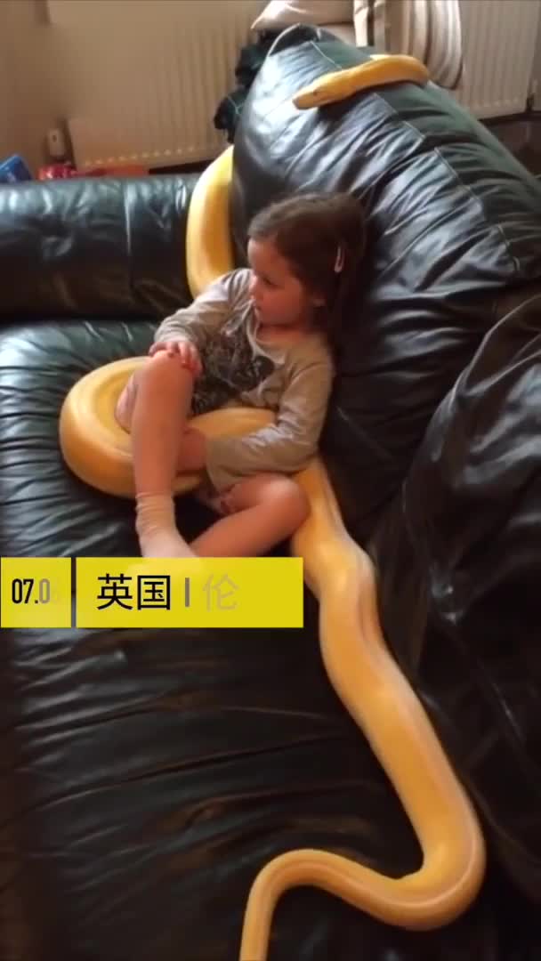 四岁萌娃抱3米巨蟒看电视,蟒蛇还安逸地打起了哈欠