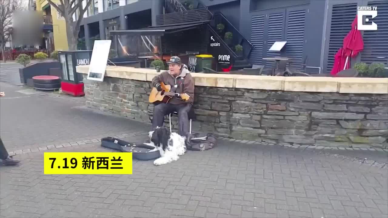 男子街头献唱,狗狗伴奏神助攻,两种声音十分和谐