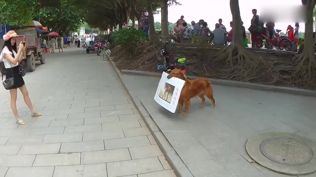 聪明的金毛叼着块广告牌,回头率1000%,这广告打得太妙!