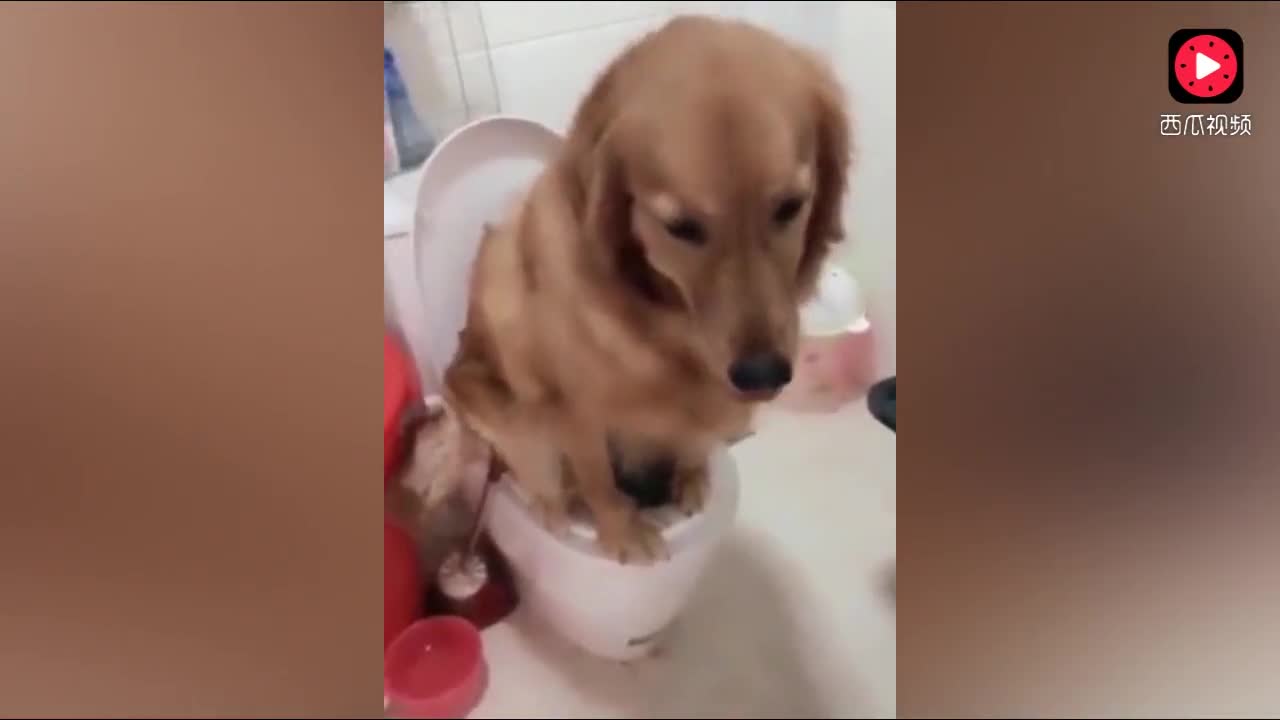 金毛妞妞上厕所,爸爸一直在边上催,狗狗翻脸就想咬人