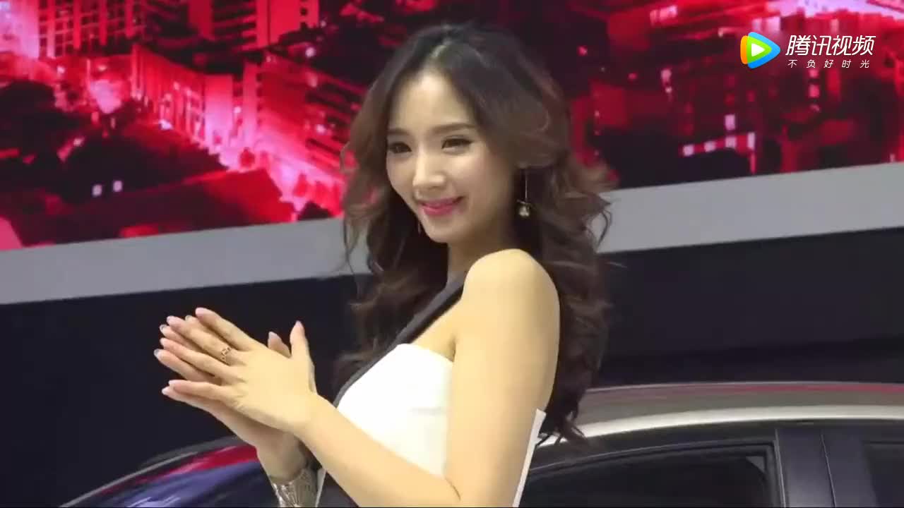 调皮可爱的美女车模,车展上给观众做各种表情