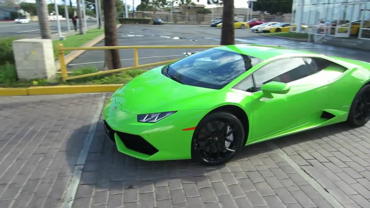 绿色版兰博基尼开出来的时候,引路人疯狂拍摄