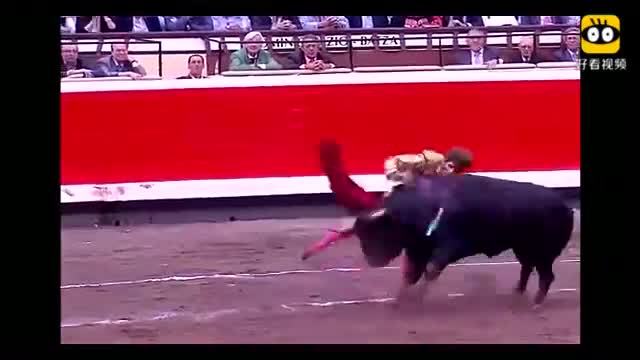 斗牛士一剑刺穿牛身体,斗牛突然反杀报复,场面非常激烈