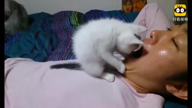 小奶猫没事做就扇主人巴掌,但是怎么就看着那么萌呢?