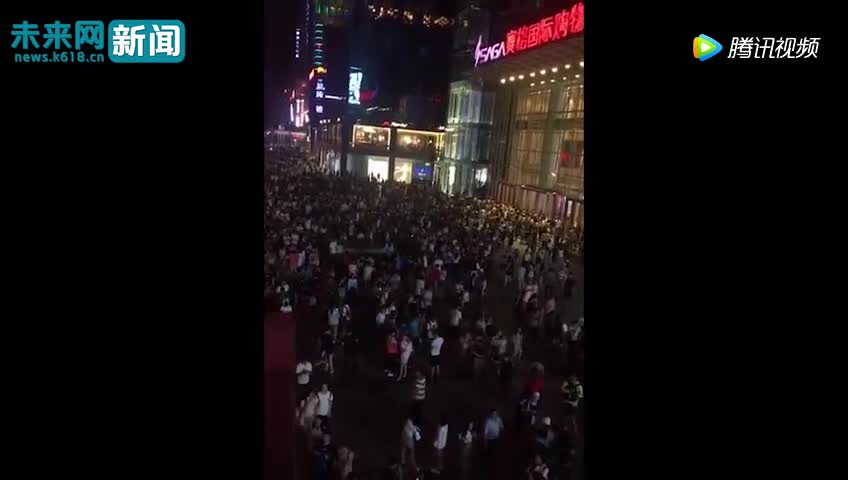 九寨沟地震民众“裹被子”出逃 广场人山人海
