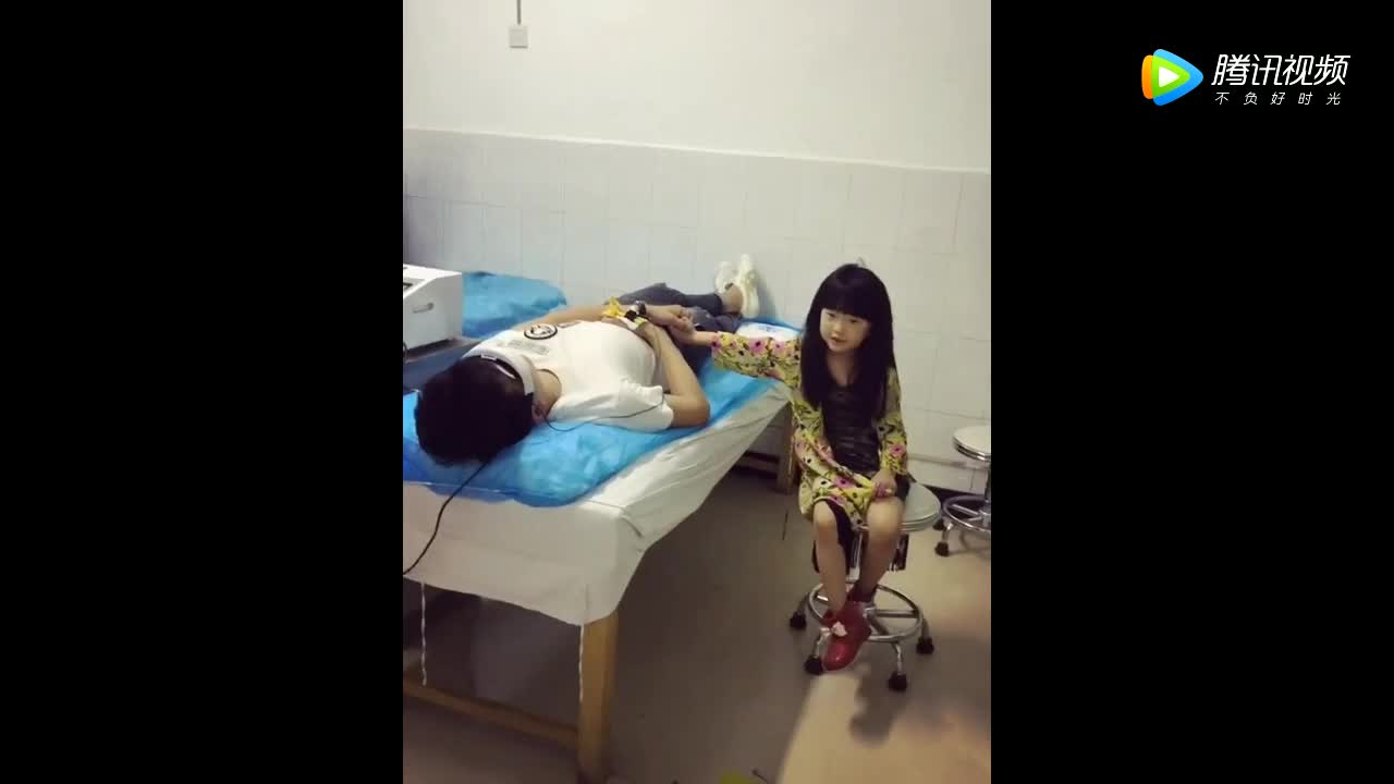 女儿陪爸爸看病,小手拉着爸爸的手说爸爸别害怕,我在这儿呢