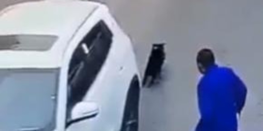 轿车连撞路边护栏男子打开车门查看后一只猫跳下车,原来猫在开车