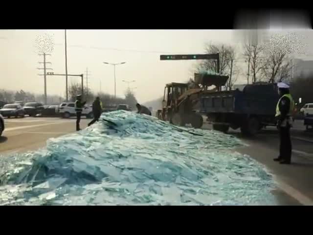 货车司机遇红灯急刹车 41吨玻璃碎成渣