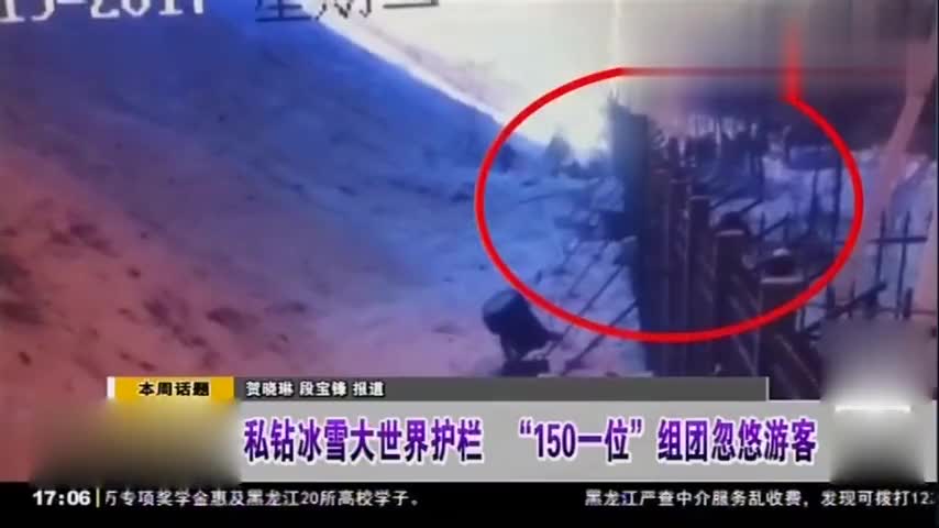 监控拍下私钻冰雪大世界护栏犯罪团伙组团忽悠游客