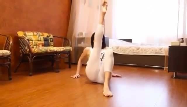 美女每天坚持瑜伽拉筋,这么难的动作也能轻松完成